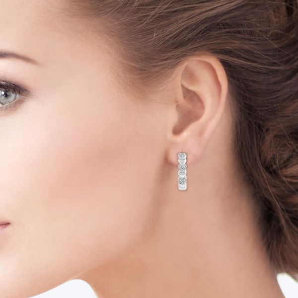 Heart jewelry came into existence in the Middle Ages, but it reached a high in the 20th Century and continues to be of great significance even today. Jewelry with heart charms is often gifted to showcase one's love. Not just for lovers, heart jewelry is given to family and friends too. This mini hearts hoop earring is a good option. It features tiny hearts linked together, all the way round. While most hearts are plain gold, there are 3 milgrain finished, diamond embellished hearts, alternating a plain gold heart at the hoop front. Each of these hearts is accented with 2 each pave set round cut diamonds, total 12 on both earrings. The hoop earring is styled in silver. Total diamond weight is 1/20 ctw. Free shipping or in-store pickup.