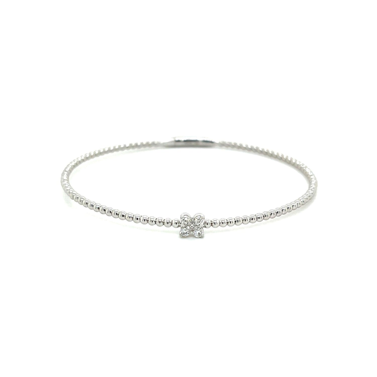 Shop this highly fashionable flower flexible lab grown diamond bangle bracelet in sterling silver with free two day shipping or in-store pickup. The perfect fit for any occasion. Metal Type/Color: Sterling Silver Diamond Carat Total Weight: 1/6 Ctw # of Diamonds: 4 Round Lab Grown Diamonds