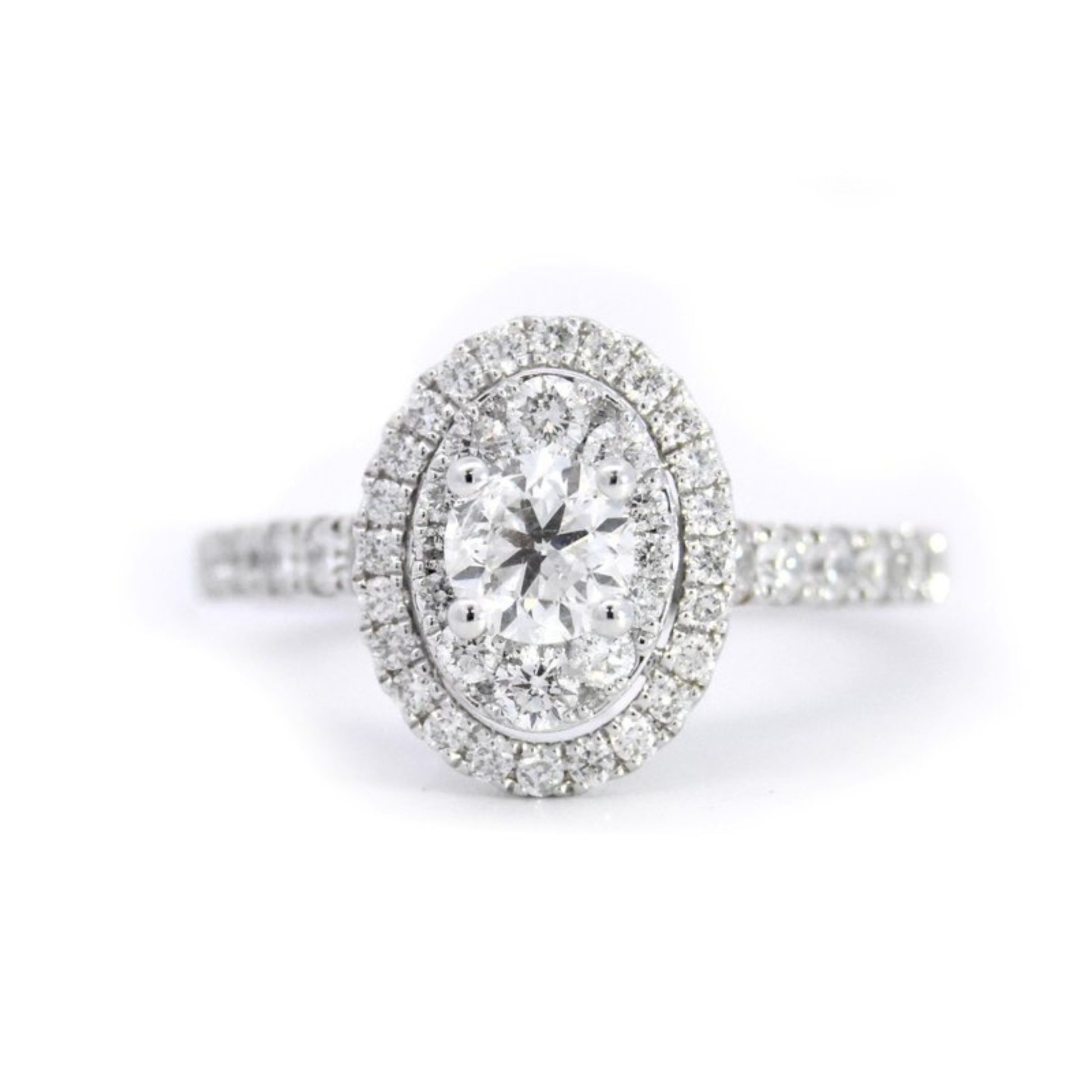 Shop this beautiful oval double halo diamond engagement ring with free two day shipping or in-store pickup. Stock ring size (7). Ring includes free ring sizing, free rhodium plating, and free ring cleanings for life with purchase.