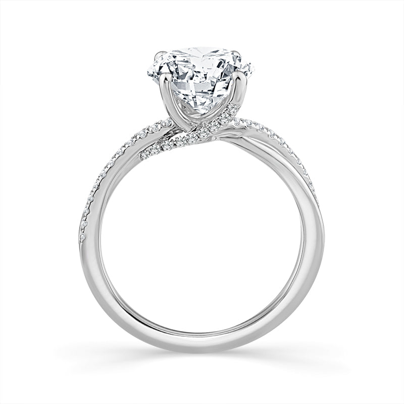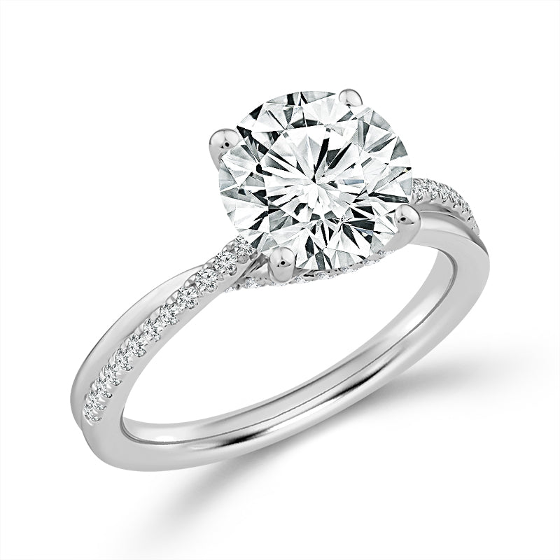 Metal: 14k White Gold Total Diamond Weight: 2 3/4 Ctw or Larger Center Diamond Carat Weight Range: 2.5 Ct Round Lab Grown Diamond or Larger. # of Side Diamonds: 44 Round Lab Grown Diamonds (1/5 ctw) Guaranteed Diamond Color Range: E-F Color Guaranteed Diamond Clarity Range: VS1-VS2 Cut: Excellent
