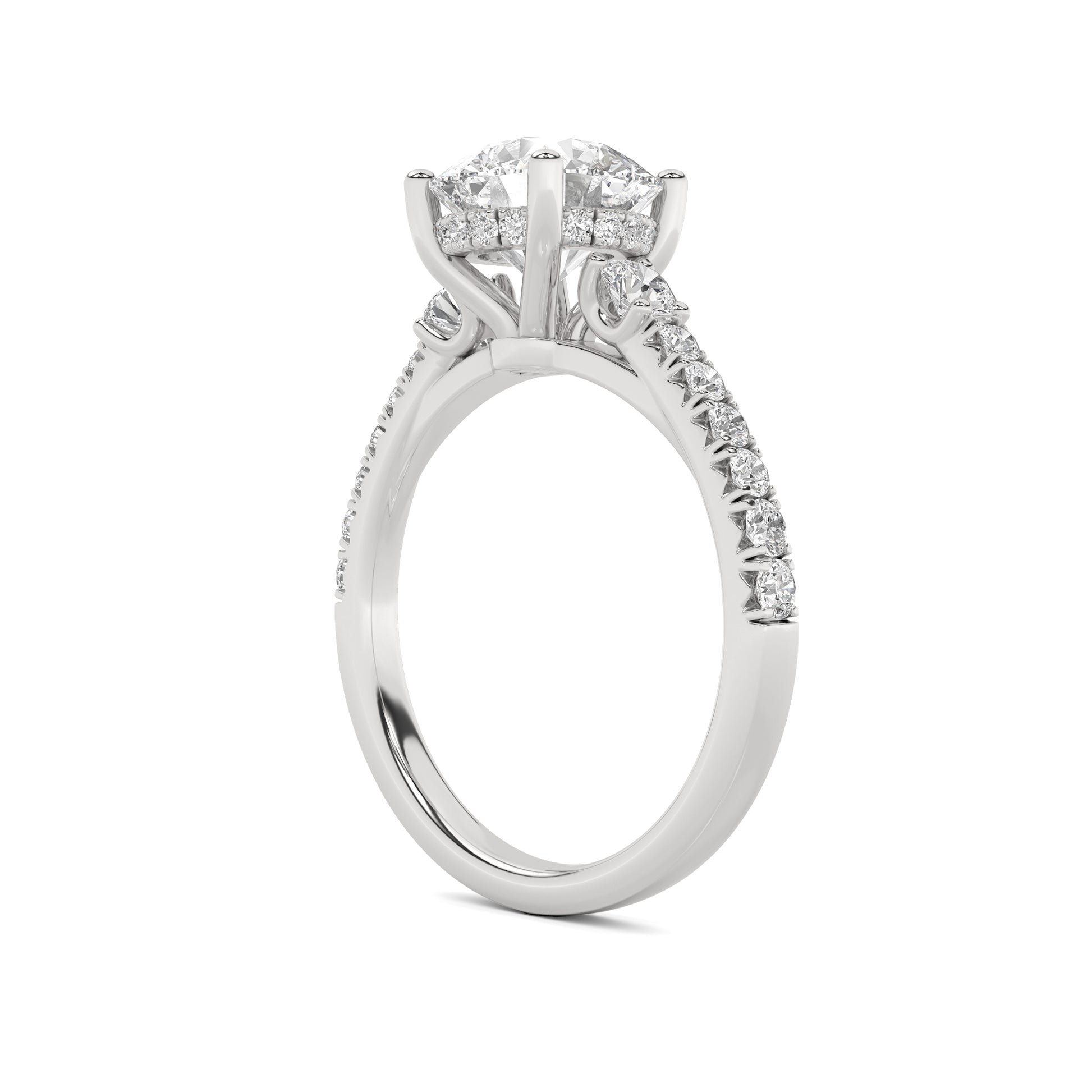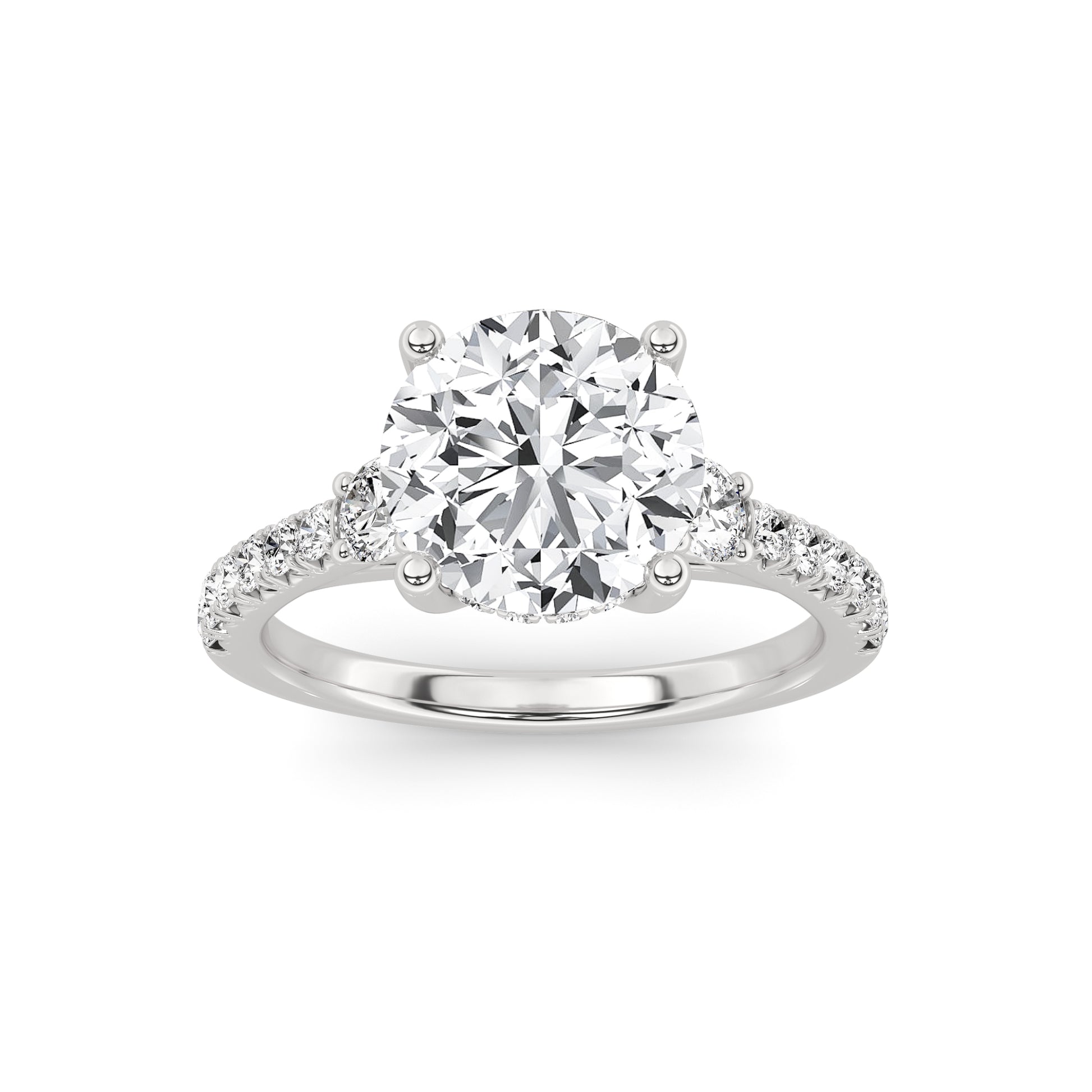 Metal: 14k White Gold Total Diamond Weight: 2 3/4 Ctw Center Diamond Carat Weight Range: 2.26 Ct - 2.34 Ct # of Side Diamonds: 50 Round Diamonds Guaranteed Diamond Color Range: D-F Color Guaranteed Diamond Clarity Range: VVS-VS Cut: Excellent