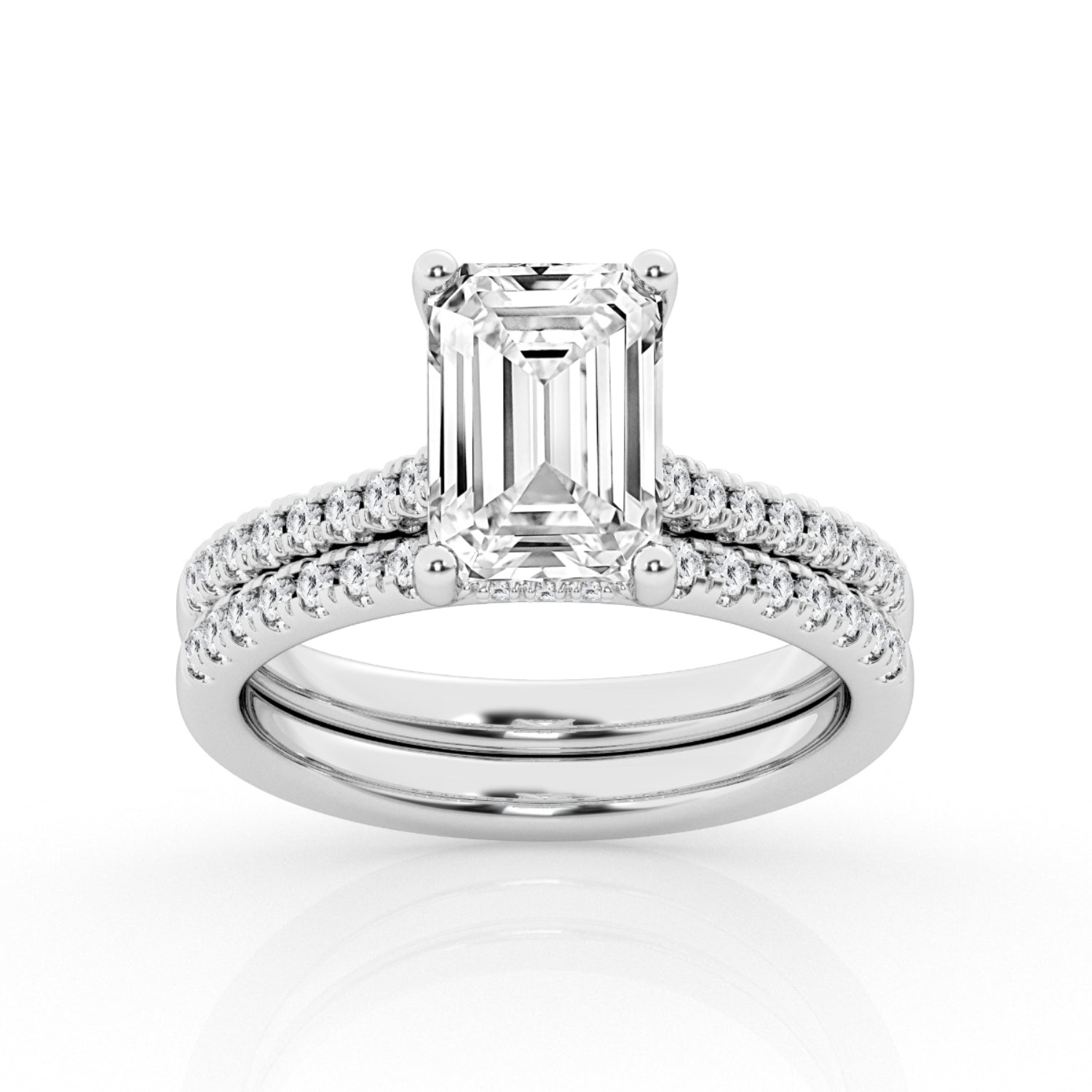 Shop this stunning emerald hidden halo lab grown diamond wedding set in 14 karat white gold with free two day shipping or in-store pickup. Enjoy free ring sizing for life with your purchase.