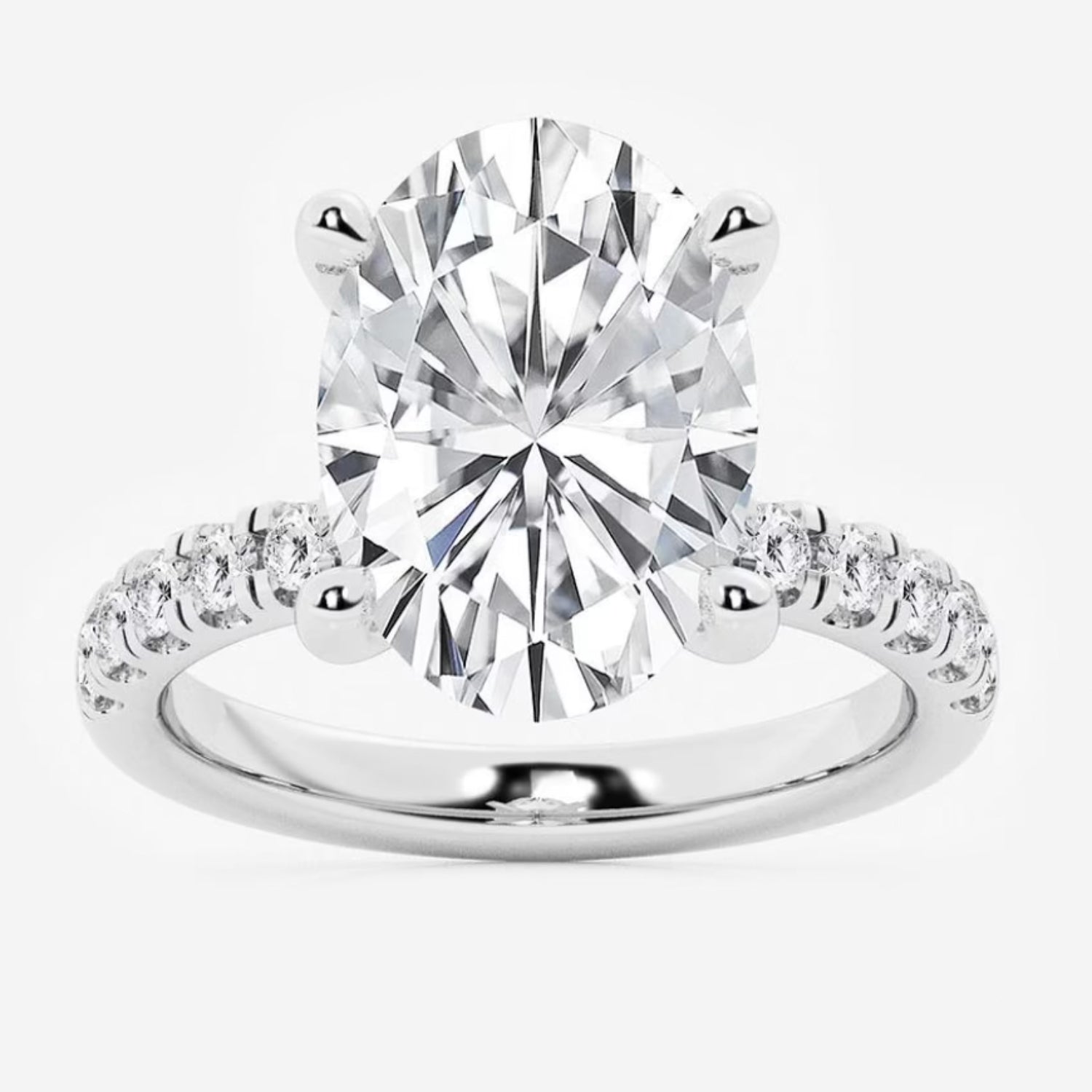 Metal Type/Color: 14 Karat White Gold Diamond Carat Total Weight: 5 1/2 Ctw Center Diamond Carat Weight: 5 Carat Oval Lab Grown Average Diamond Color: F-G Average Diamond Color: VS # of Side Diamonds: 28 Round Lab Grown Diamonds Free 2 Day Shipping or In-Store Pickup