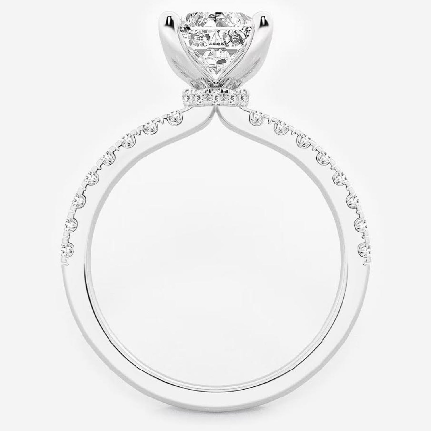 Shop this absolutely stunning oval cut hidden halo lab grown diamond engagement ring in 14 karat white gold with free two day shipping or in-store pickup. This engagement ring features a 5 carat lab grown oval center diamond. Enjoy free ring sizing for life with your engagement ring purchase only at Robert Irwin Jewelers.