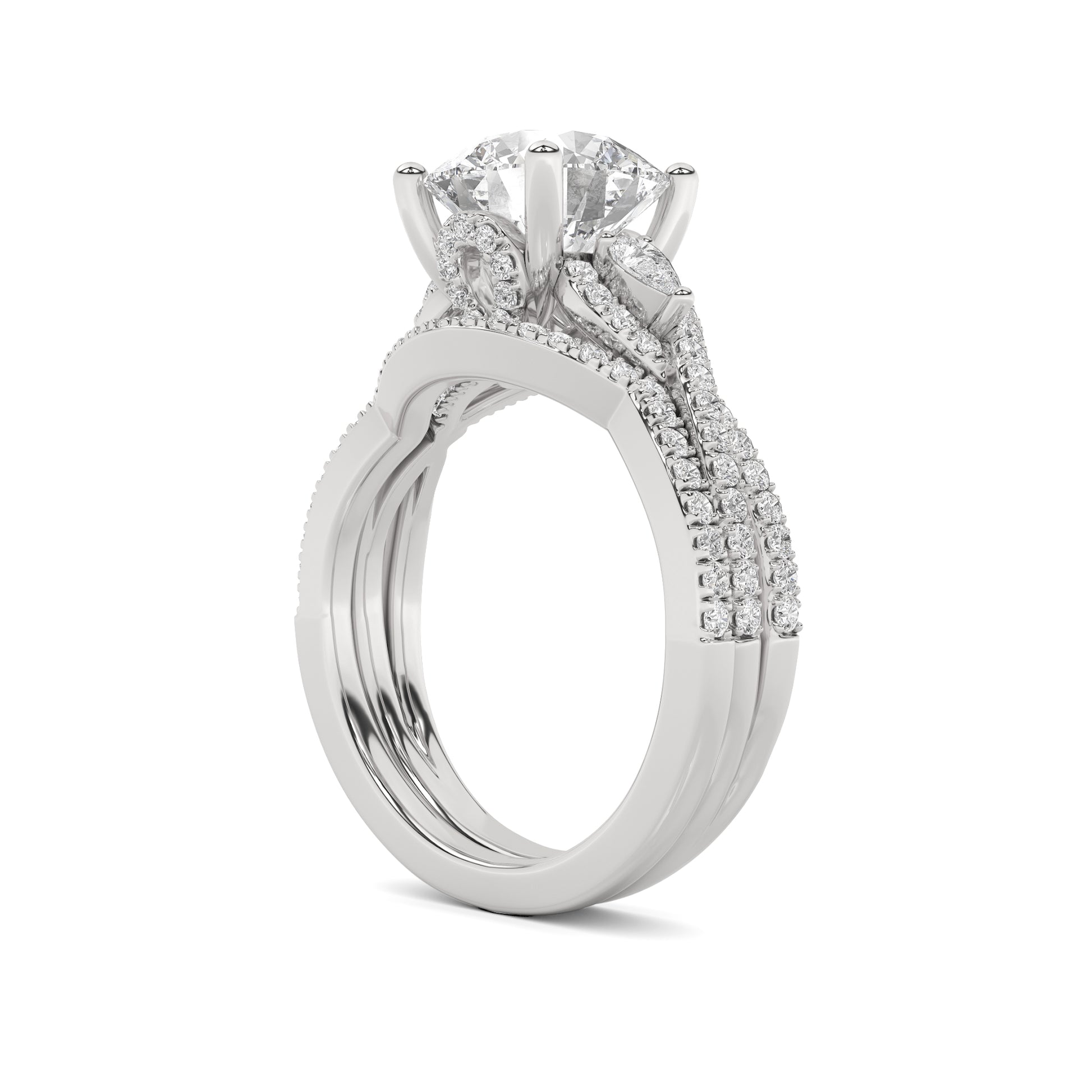 This stunning diamond wedding set from the Above Love Star collection features a 2 1/2 carat round lab-grown diamond center set in 14k white gold, with a total carat weight of 3 1/4 Ctw. Enjoy free two-day shipping or in-store pickup at any of our five Robert Irwin Jewelers Locations.