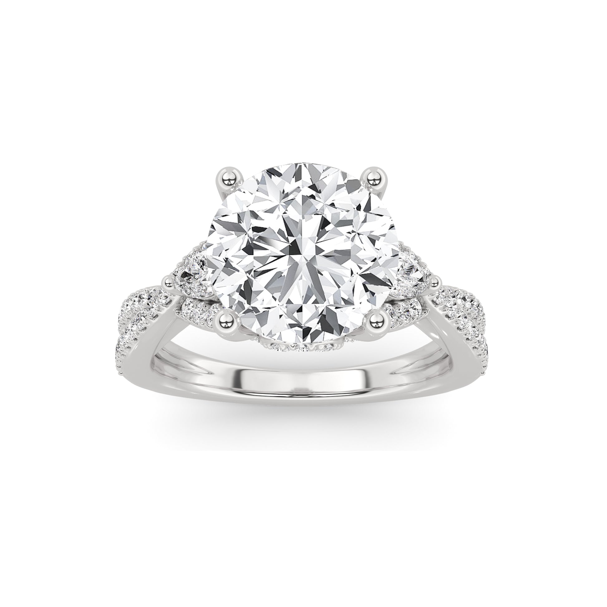 Metal: 14k White Gold Total Diamond Weight: 3 1/4 Ctw Center Diamond Carat Weight Range: 2.83 Ct - 2.85 Ct # of Side Diamonds: 118 Round Diamonds Guaranteed Diamond Color Range: D-F Color Guaranteed Diamond Clarity Range: VVS-VS Cut: Excellent