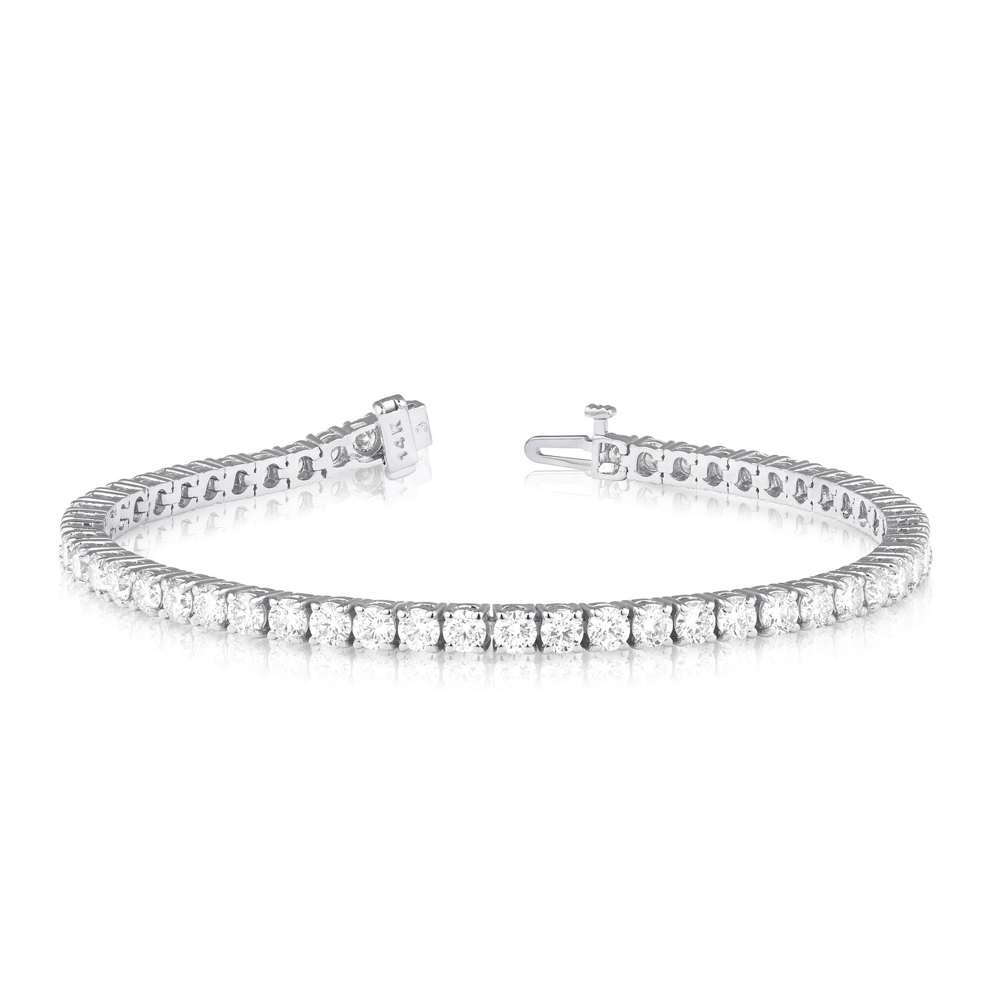 Make a statement with this stunning 10 carat total weight lab grown diamond tennis bracelet in 14 karat white gold with free two day shipping or in-store pickup. Metal Type/Color: 14 Karat White Gold Diamond Carat Total Weight: 10 Ctw # of Diamonds: 44 Round Lab Grown Diamonds Diamond Color: F-G Color Diamond Clarity: VS1-VS2 Clarity Bracelet Length: 7 Inches