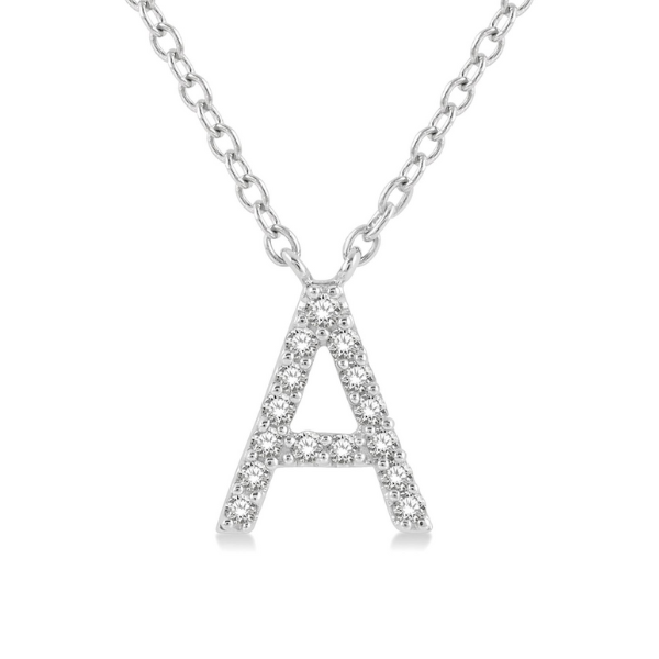 Initial pendants offer a personalized feel. Whether it is wearing one's own initials or the initials of a loved one, the initial pendant is a popular choice. It can be worn by itself or layered with other dainty pendants. So, if you have an 'A' initial in mind, this initial pendant would be a perfect buy. It is also decorated with round-cut diamonds to enhance its appeal. There are a total of 15 prong set round cut diamonds embellishing the initial pendant. A cat chain carries the pendant, both of which are styled in 10-karat white gold. The total diamond weight is 1/20 ctw. Free shipping or in-store pickup.