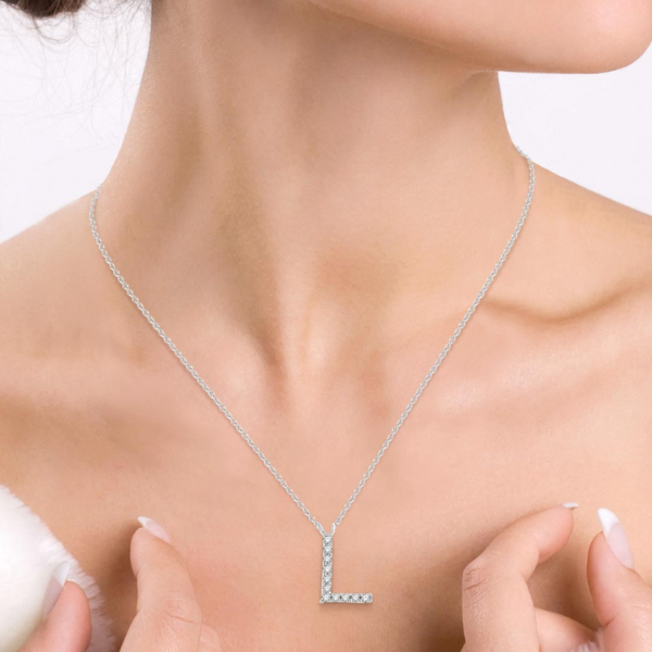Initial pendants offer a personalized feel. Whether it is wearing one's own initials or the initials of a loved one, the initial pendant is a popular choice. It can be worn by itself or layered with other dainty pendants. So, if you have an 'L' initial in mind, this initial pendant would be a perfect buy. It is also decorated with round-cut diamonds to enhance its appeal. There are a total of 10 prong set round cut diamonds embellishing the initial pendant. A cat chain carries the pendant, both of which are styled in 10-karat white gold. The total diamond weight is 1/20 ctw. Free shipping or in-store pickup.