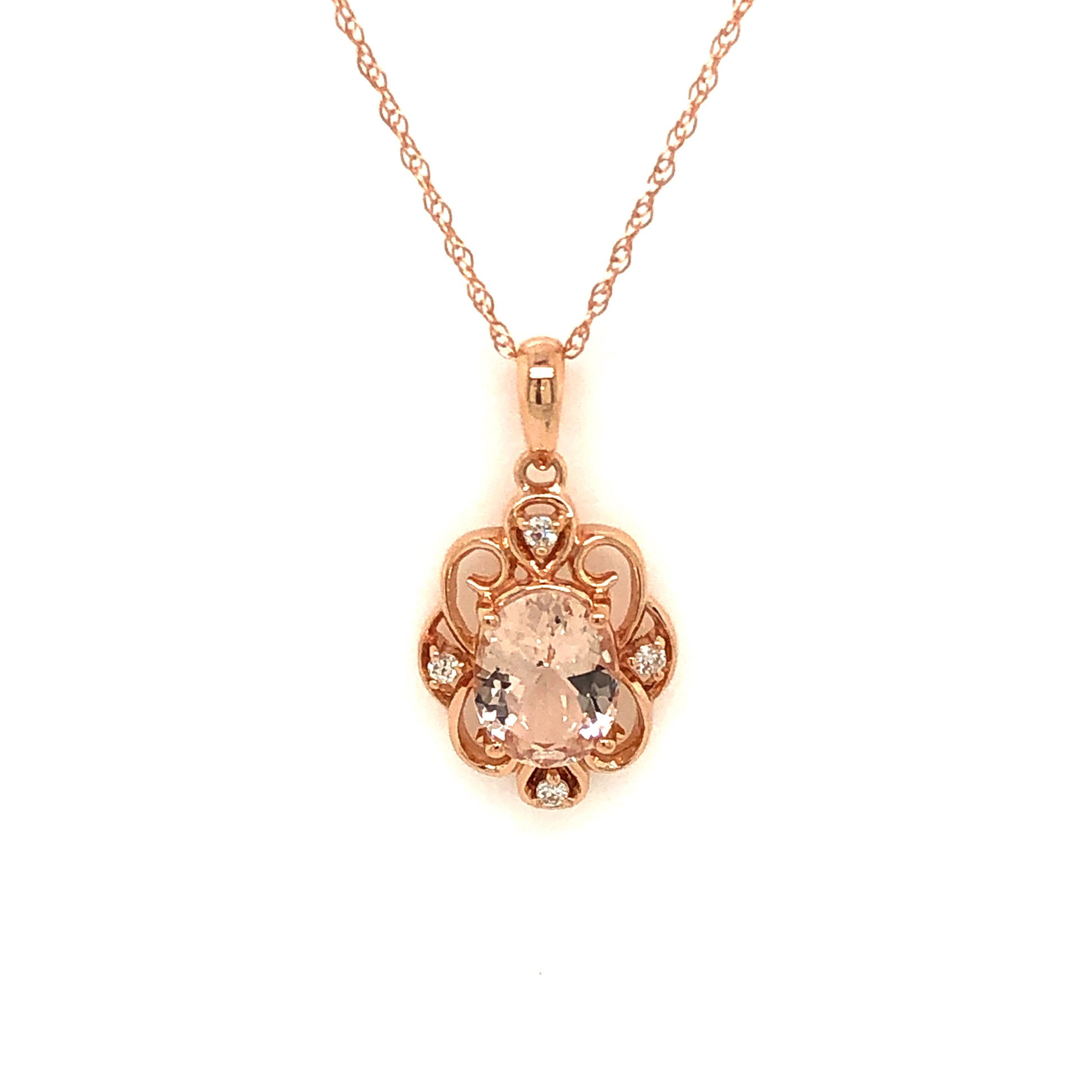 10k Rose Gold 1.04ctw Morganite and Diamond Pendant