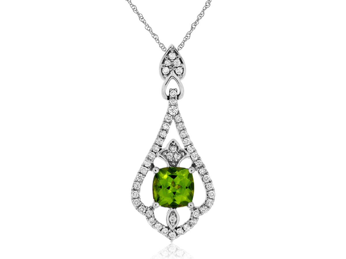 10k White Gold 1.29ctw Peridot and Diamond Pendant