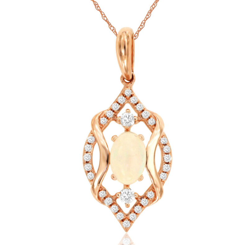 14 Karat Yellow Gold 2/5 Carat Oval Opal Diamond Pendant