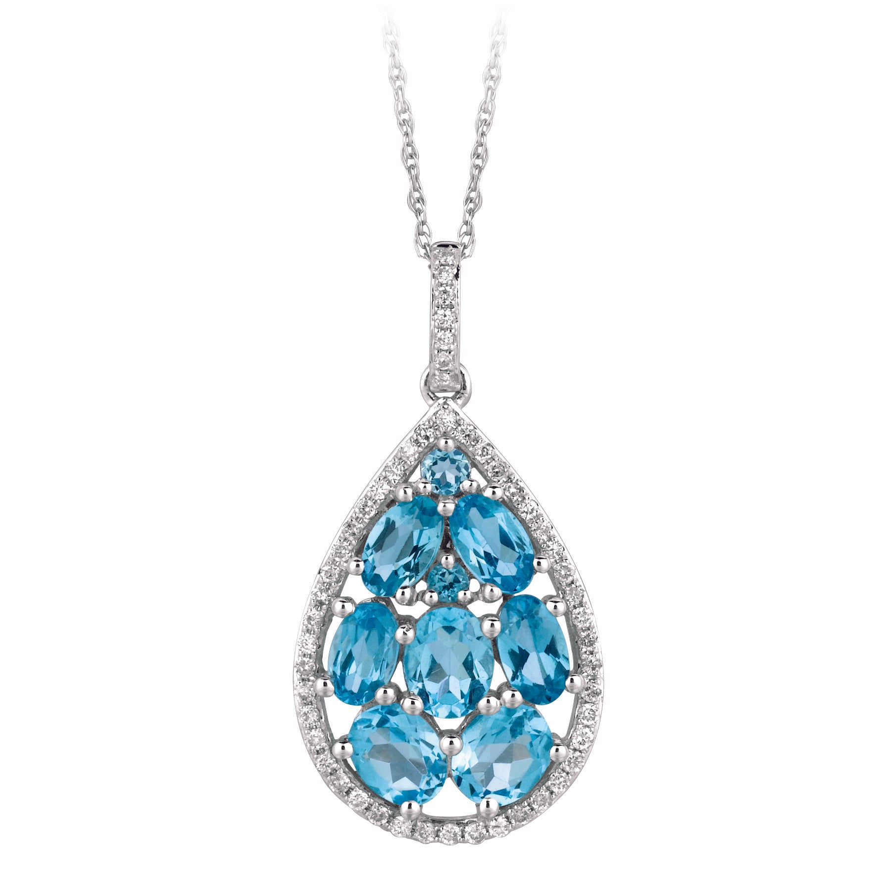 14k White Gold 2.70ctw Blue Topaz and Diamond Pendant
