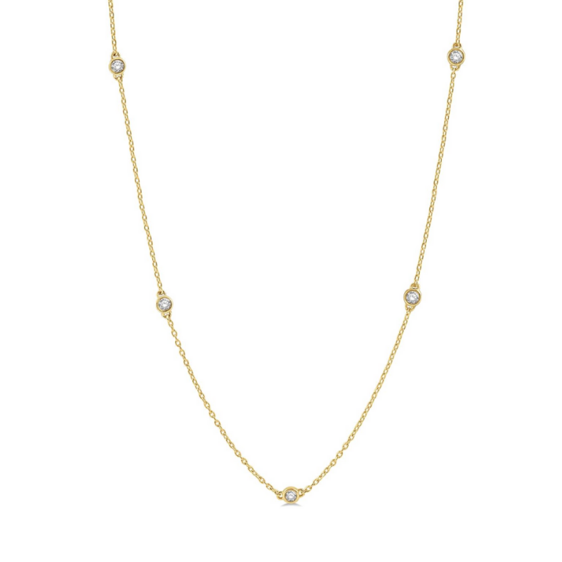 3/4 Ctw Round Cut Diamond Fashion Necklace in 14K Yellow Gold Metal Type/Color: 14 Karat Yellow Gold Total Diamond Carat Weight: 3/4 Carat Total Number of Diamonds: 11 Round Diamonds Diamond Color: I Diamond Clarity: I1 Chain Length: 18 Inches Free Shipping or In-Store Pickup