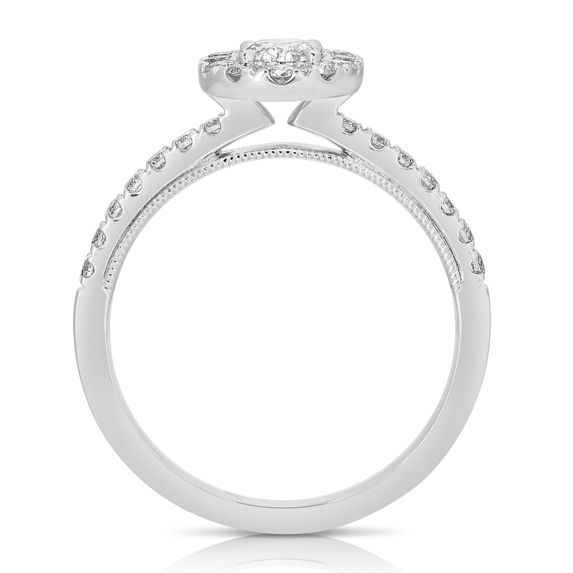 Shop this beautiful oval diamond halo engagement ring in 14 karat white gold with free two day shipping or in-store pickup.