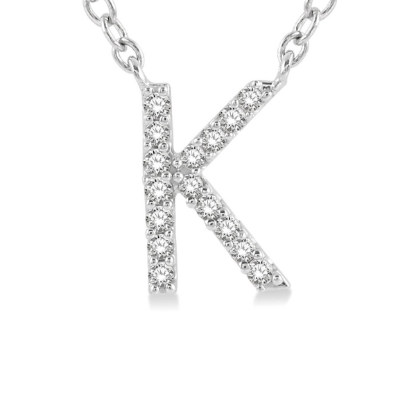 Initial pendants offer a personalized feel. Whether it is wearing one's own initials or the initials of a loved one, the initial pendant is a popular choice. It can be worn by itself or layered with other dainty pendants. So, if you have a 'K' initial in mind, this initial pendant would be a perfect buy. It is also decorated with round-cut diamonds to enhance its appeal. There are a total of 16 prong set round cut diamonds embellishing the initial pendant. A cat chain carries the pendant, both of which are styled in 10-karat white gold. The total diamond weight is 1/20 ctw. Free shipping or in-store pickup.