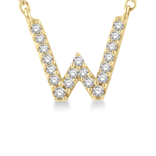 Initial pendants offer a personalized feel. Whether it is wearing one's own initials or the initials of a loved one, the initial pendant is a popular choice. It can be worn by itself or layered with other dainty pendants. So, if you have a 'W' initial in mind, this initial pendant would be a perfect buy. It is also decorated with round-cut diamonds to enhance its appeal. There are a total of 19 prong set round cut diamonds embellishing the initial pendant. A cat chain carries the pendant, both of which are styled in 10-karat yellow gold. The total diamond weight is 1/20 ctw. Free shipping or in-store pickup.