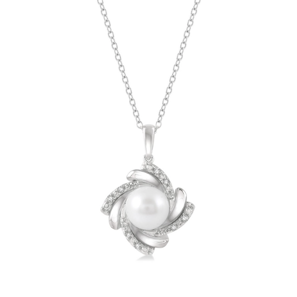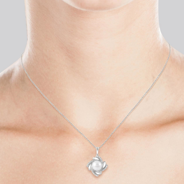 Metal Type/Color: Sterling Silver Color Gemstone Size: 7x7mm White Pearl Diamond Carat Total Weight: 1/50 Ctw Total Number of Diamonds: 8 Round Diamonds Diamond Color: I-J Diamond Clarity: I1-I2 Chain Length: 18 Inches Free Shipping or In-Store Pickup