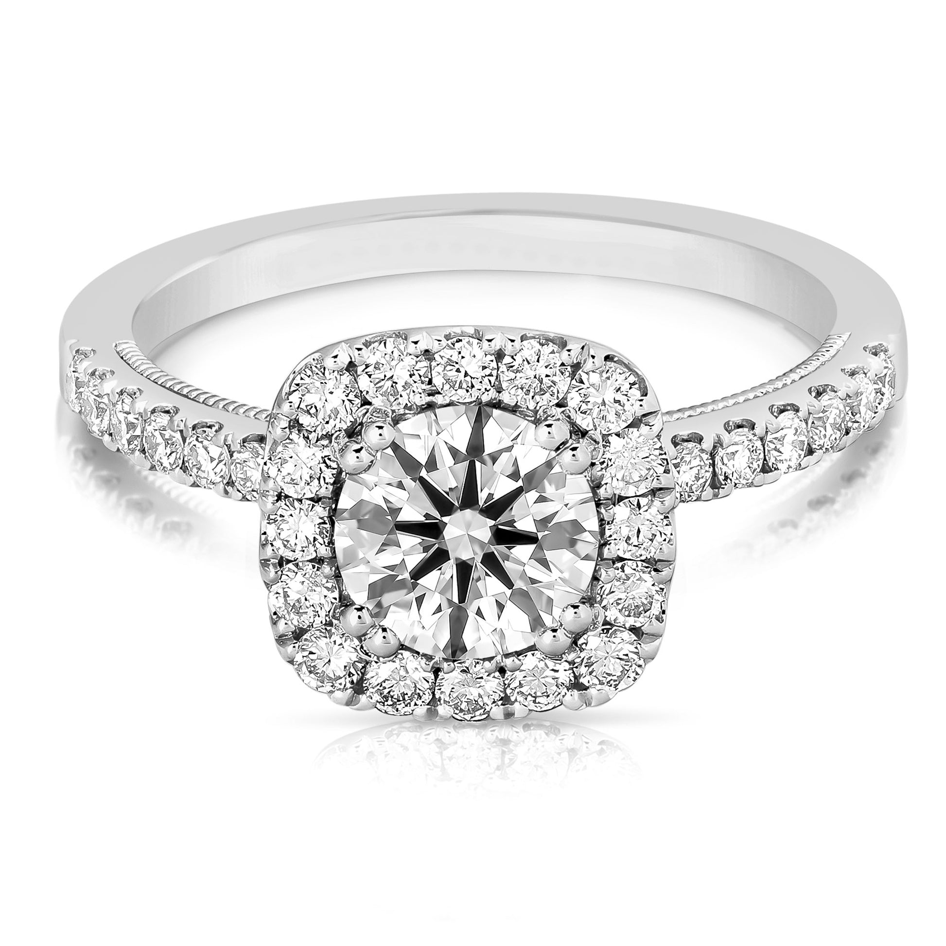 Shop this beautiful round diamond cushion halo engagement ring in 14 karat white gold with free two day shipping or in-store pickup.