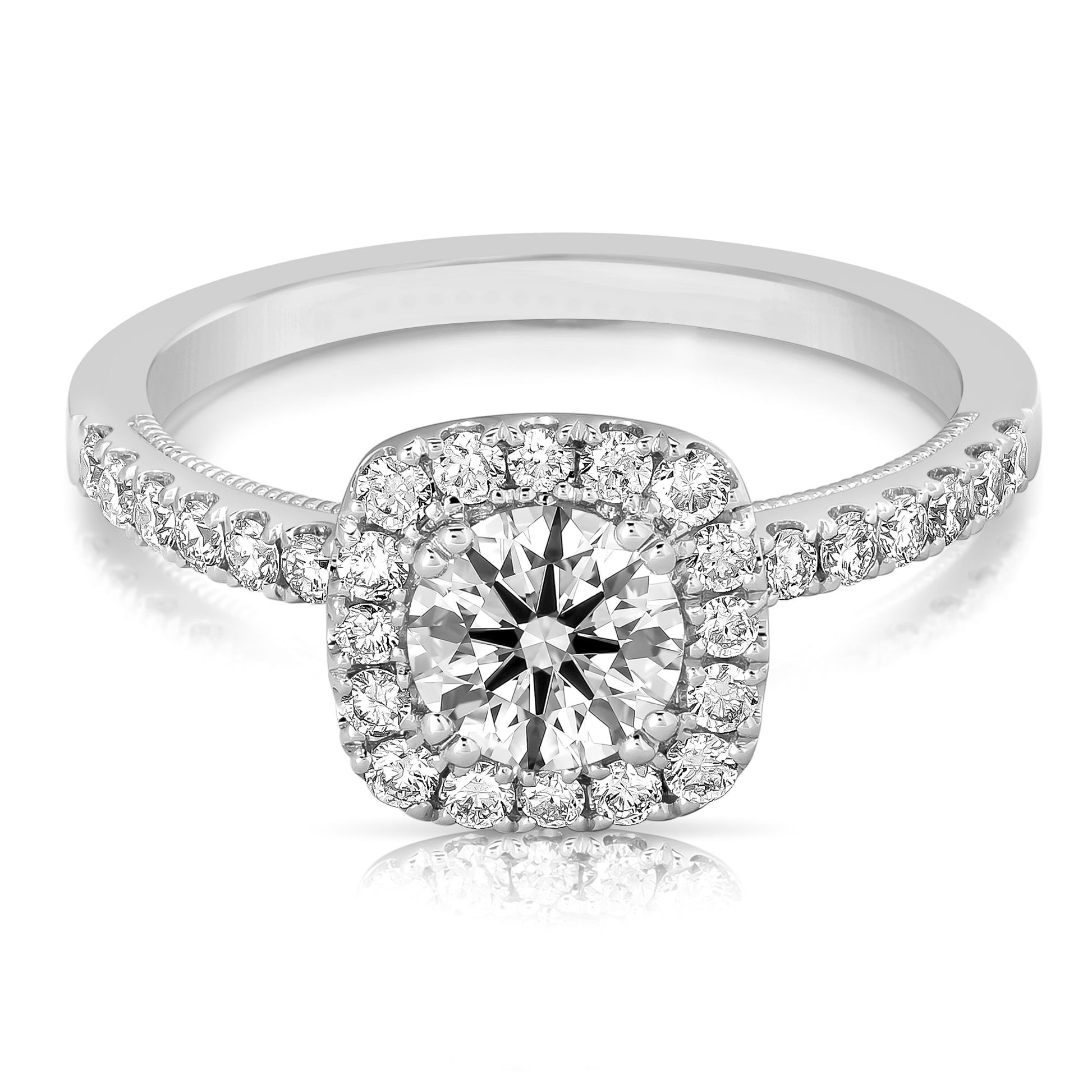 Shop this beautiful round diamond cushion halo engagement ring in 14 karat white gold with free two day shipping or in-store pickup.
