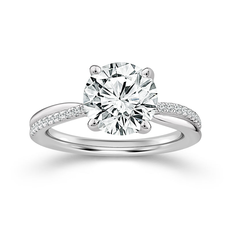 Metal: 14k White Gold Total Diamond Weight: 2 3/4 Ctw or Larger Center Diamond Carat Weight Range: 2.5 Ct Round Lab Grown Diamond or Larger. # of Side Diamonds: 44 Round Lab Grown Diamonds (1/5 ctw) Guaranteed Diamond Color Range: E-F Color Guaranteed Diamond Clarity Range: VS1-VS2 Cut: Excellent