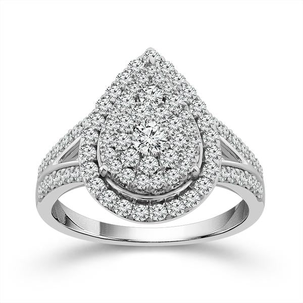 10 Karat White Gold 1 Carat Pear Halo Diamond Engagement Ring