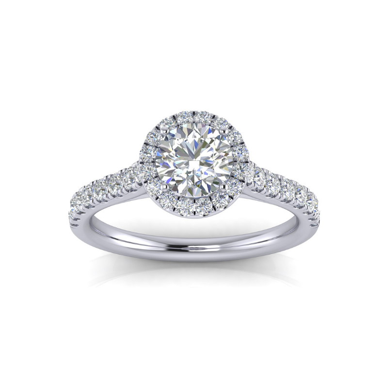 14 Karat White Gold 1 2/5 Carat Round Lab Grown Diamond Halo Engagement Ring