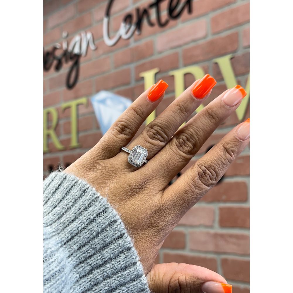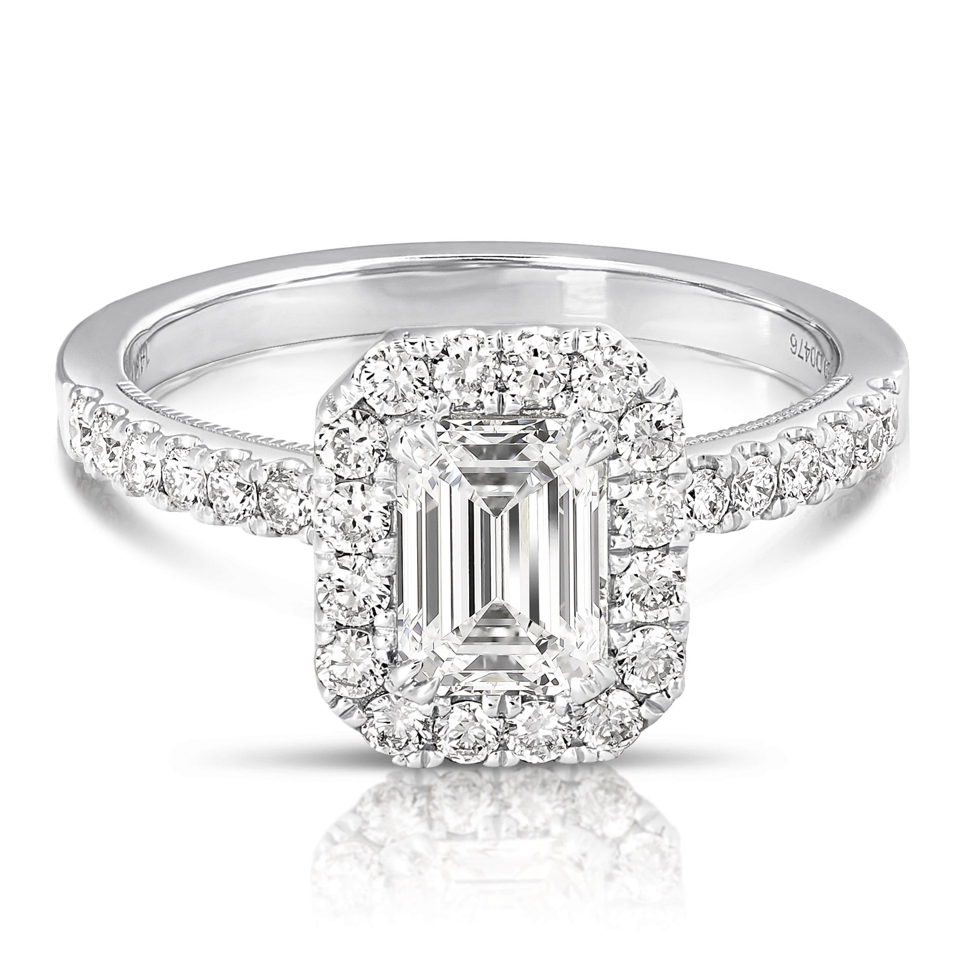 Capture her heart with this captivating engagement ring. Featuring brilliant lab-grown diamonds, prong-set at the center, surrounded by lab-grown diamonds in an emerald halo. Totaling 2.00 ctw, this stunning ring is a breathtaking symbol of your love.