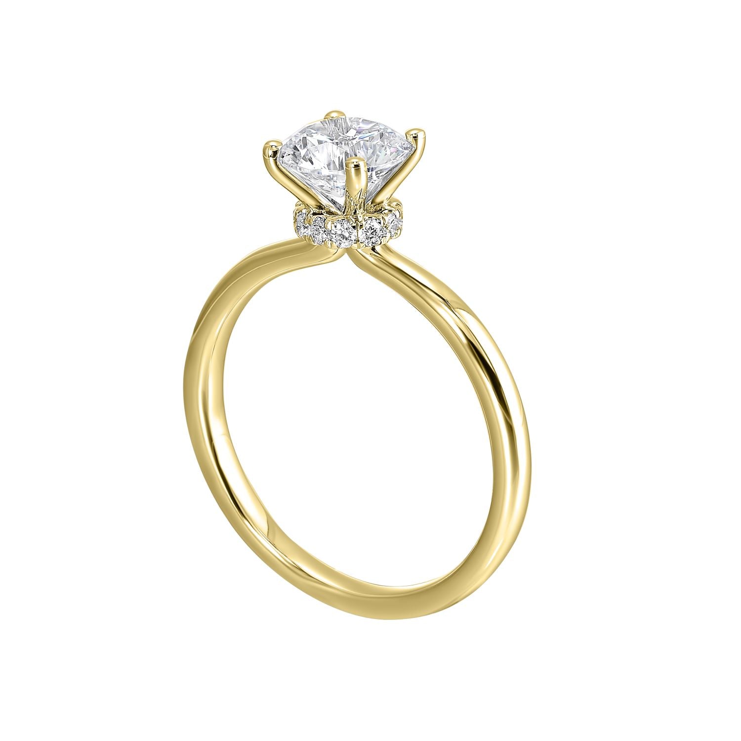 Round Hidden Halo Lab Grown Diamond Engagement Ring in Yellow Gold (2 Ct Center)