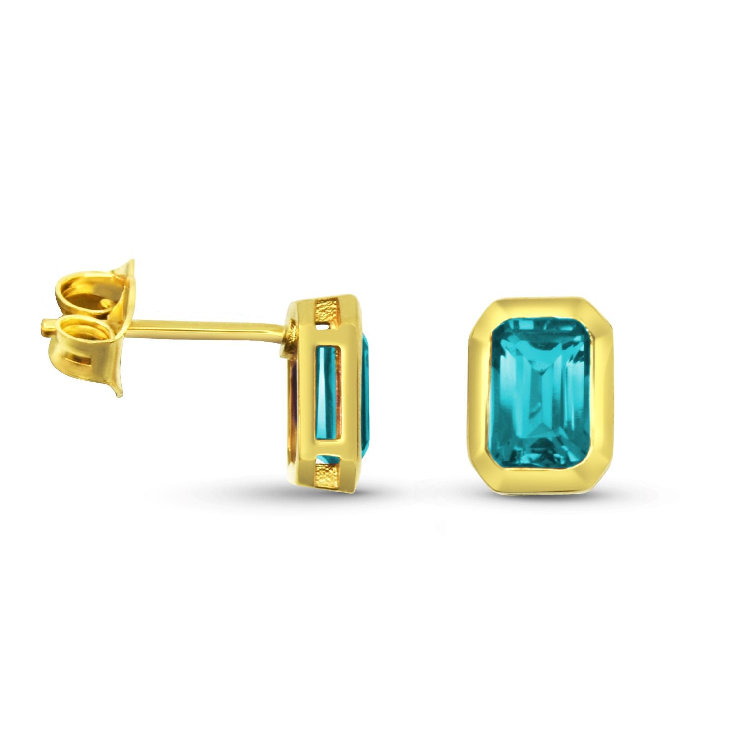 Shop these stunning Bezel Set Emerald Cut Blue Topaz Stud Earrings in 14 Karat Yellow Gold with free two day shipping or in-store pickup.