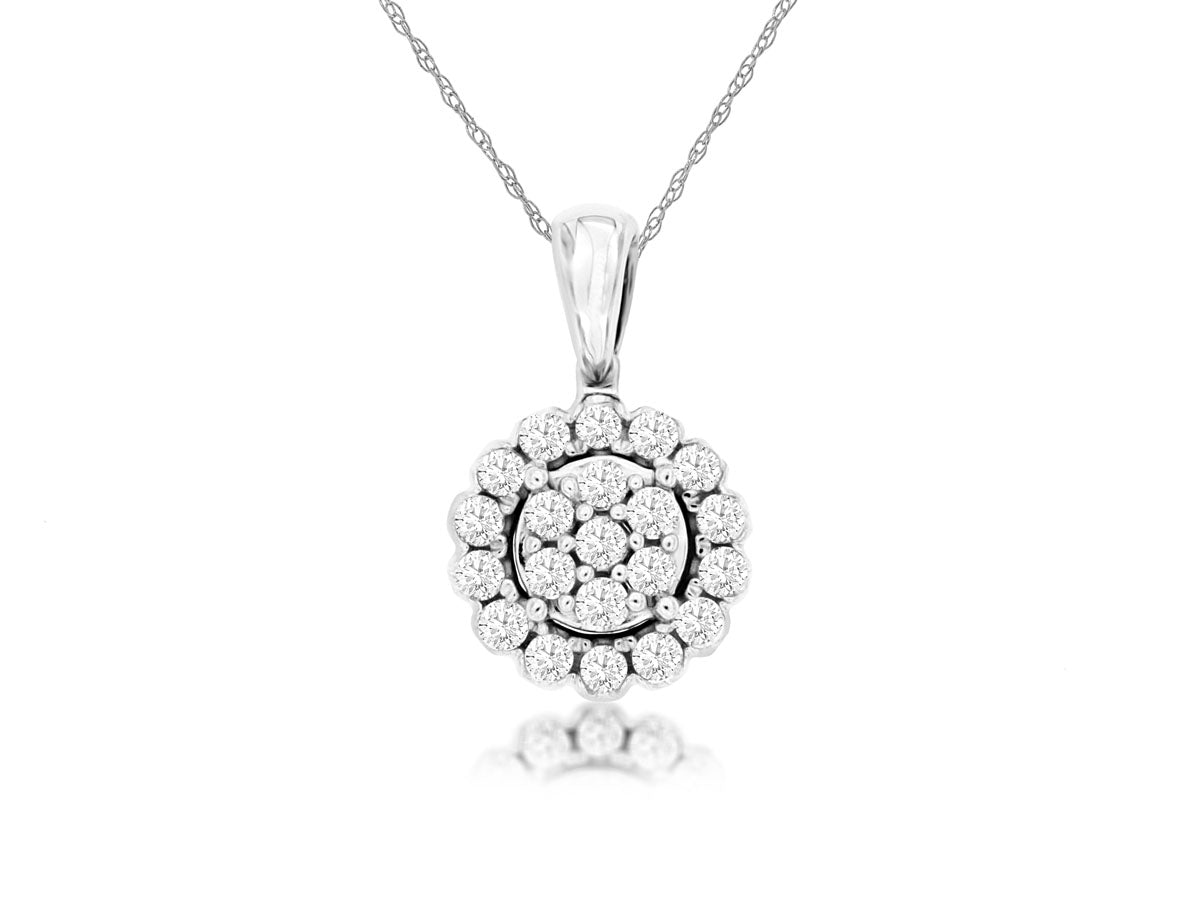 14k White Gold 0.34ctw Diamond Cluster Pendant