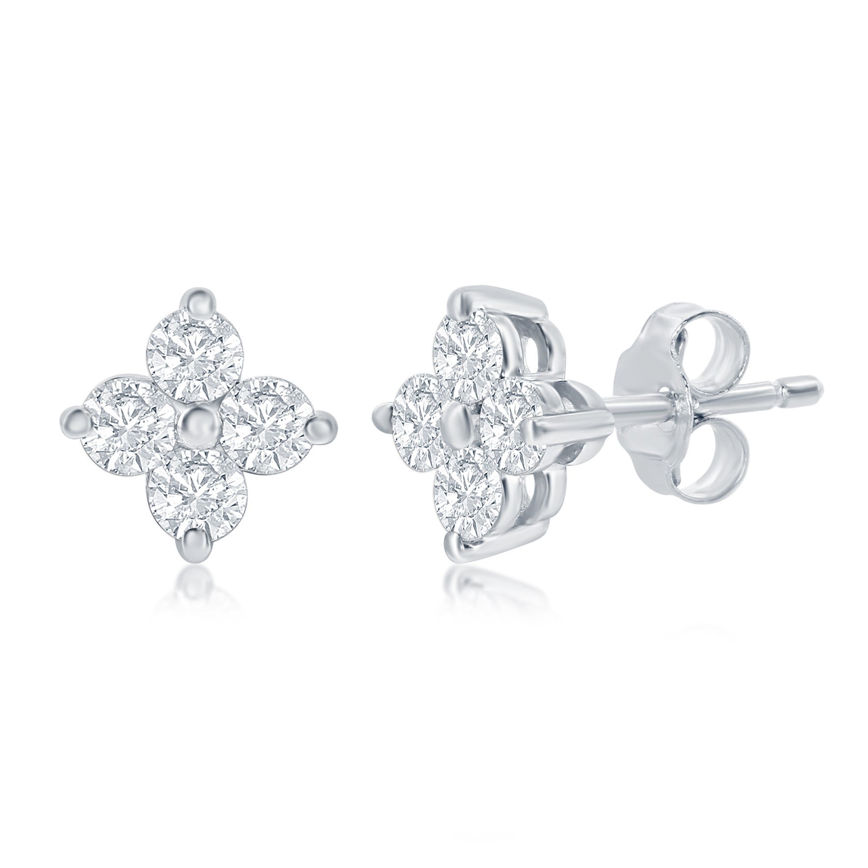 Radiate elegance with these exquisite 14K white gold diamond floral stud earrings, featuring a total of 7/8 carat of near-colorless diamonds with SI clarity or better. Each earring is designed with diamonds arranged in a delicate floral-inspired pattern, creating a captivating and feminine look that maximizes the brilliance of each stone. Set in polished white gold, the diamonds shimmer beautifully, making these earrings a perfect blend of timeless elegance and modern sophistication. Ideal for both everyday wear and special occasions, these diamond floral studs are a luxurious addition to any jewelry collection, offering a radiant touch to any outfit.