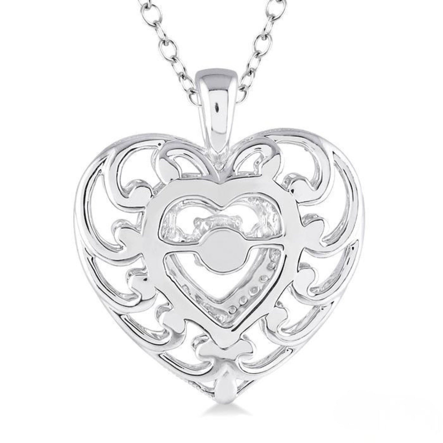 1/20 Ctw Heart Shape Diamond Emotion Pendant in Sterling Silver with Chain.