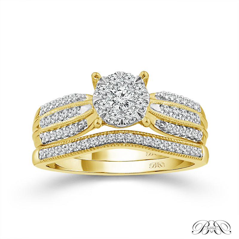 1/2 Ctw Round Multi Stone Diamond Wedding Set in 10 Karat Yellow Gold