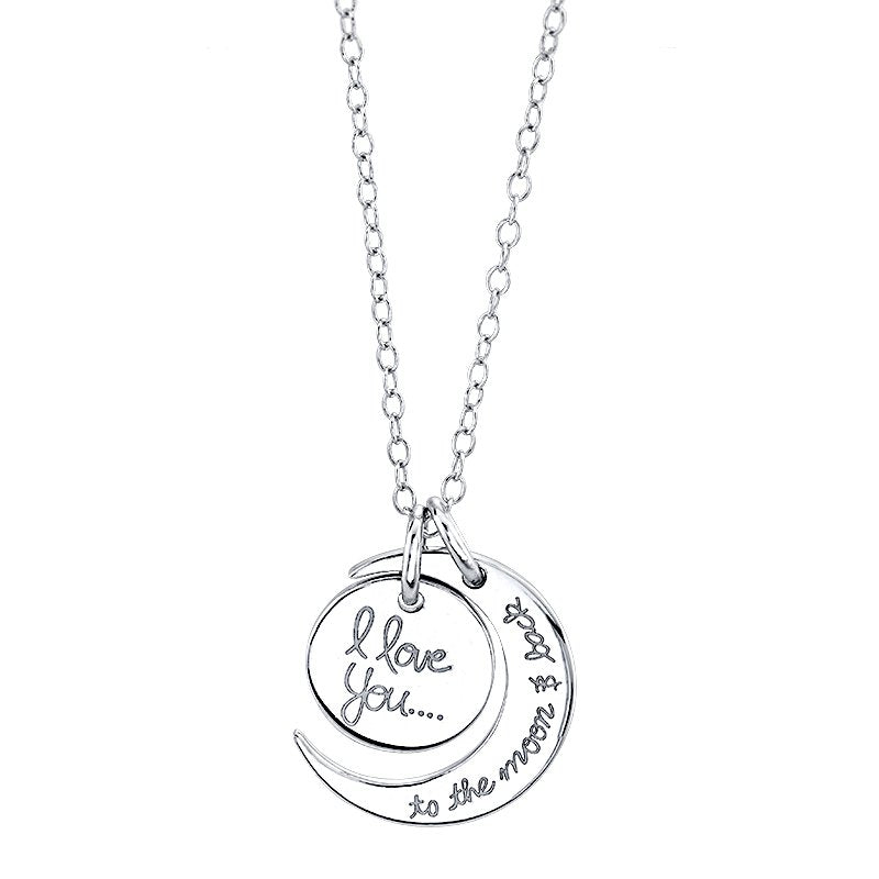 This beautiful sterling silver pendant necklace is a heartfelt expression of love. Featuring a delicate crescent moon charm engraved with "to the moon & back" and a round disc engraved with "I love you…", this piece is a timeless reminder of affection and devotion. The charms hang gracefully on a fine sterling silver chain, making it the perfect gift for someone special. Whether given for an anniversary, birthday, or just because, this necklace captures the depth of your feelings in a meaningful and stylish design that can be cherished for years to come.