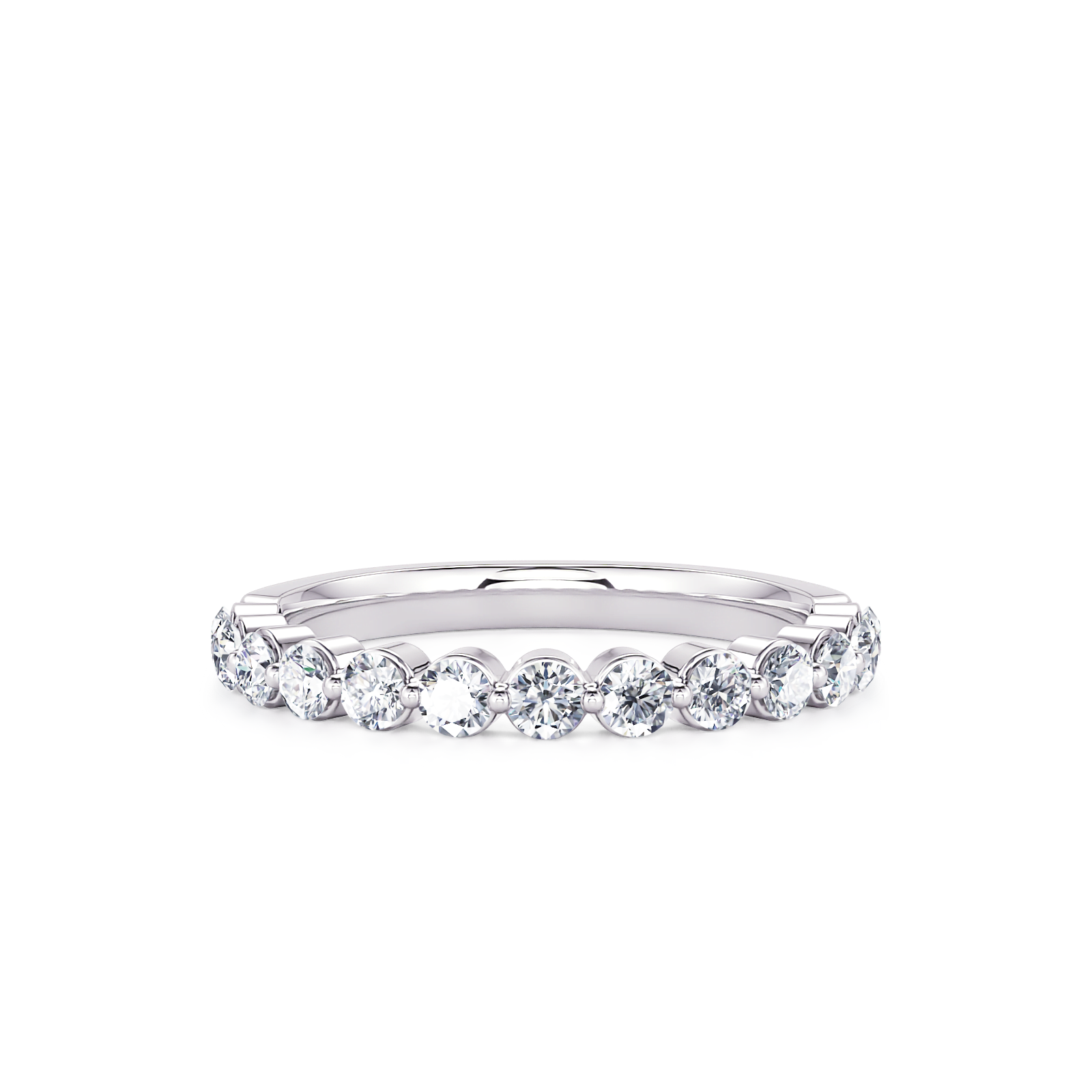 This beautiful classic single prong diamond wedding band features 1/2 ctw of round diamonds going halfway down the shank.