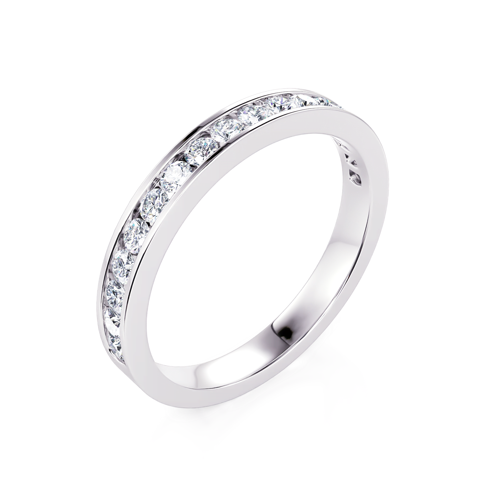 This beautiful classic channel set diamond wedding band features 1/3 ctw of round diamonds going halfway down the shank.