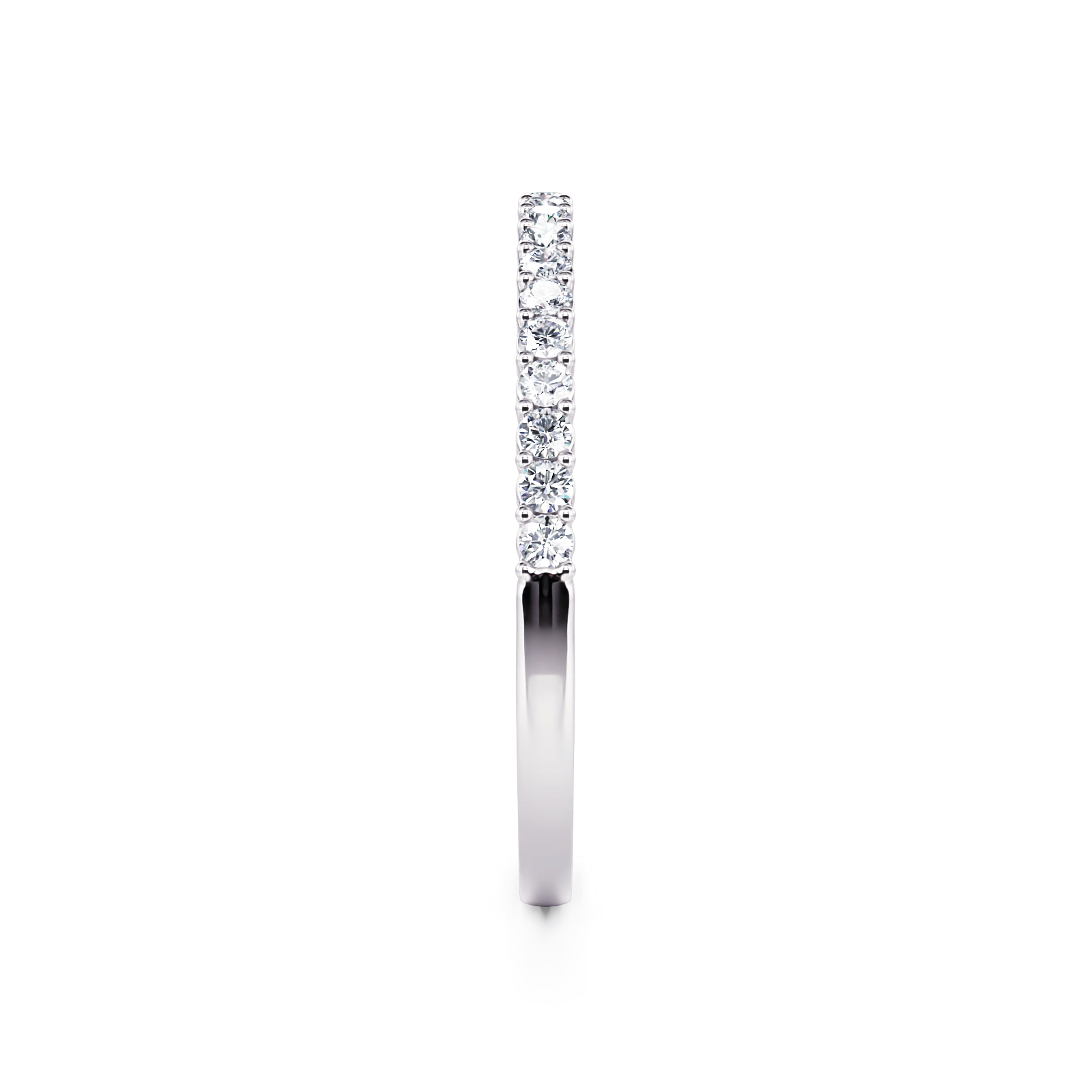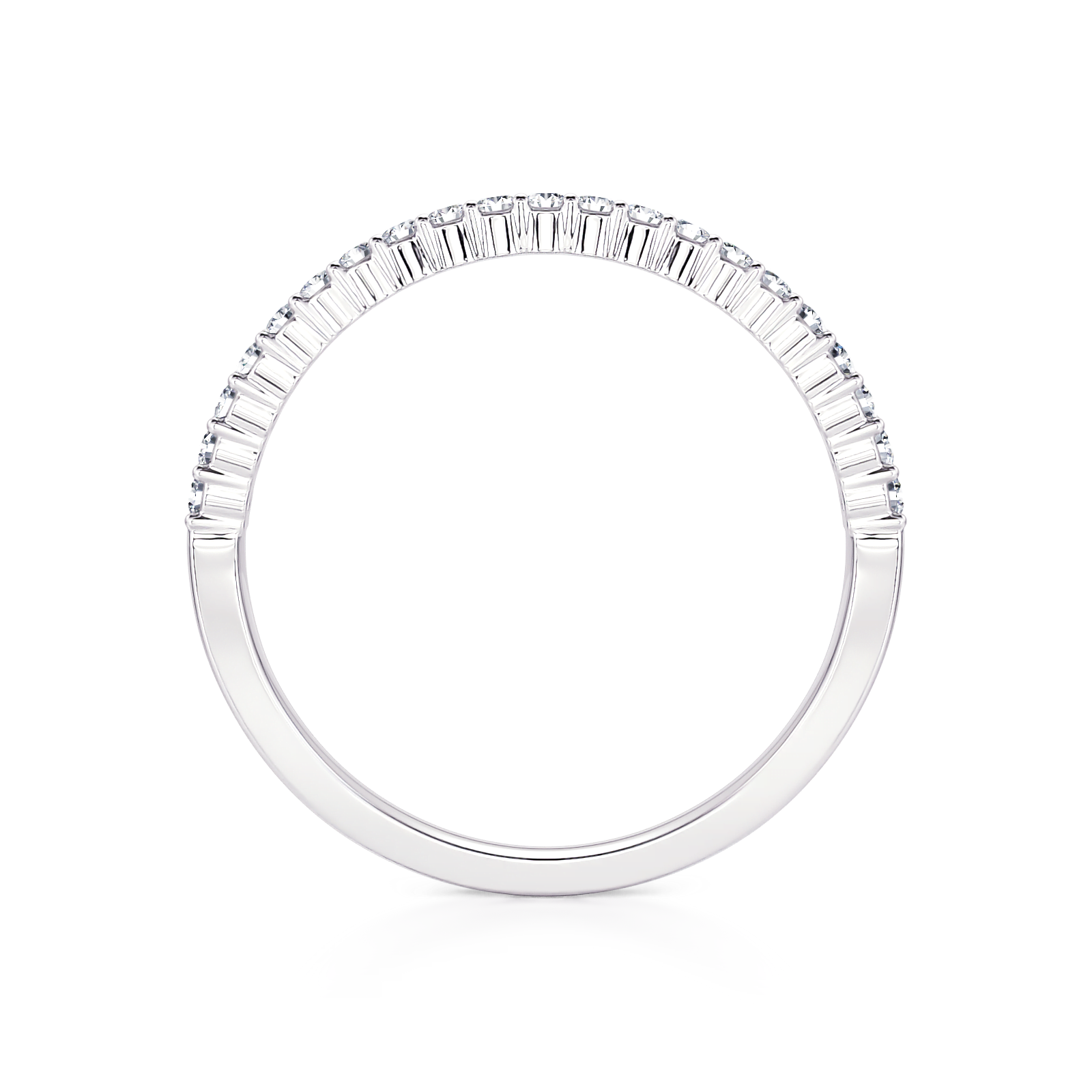 This beautiful classic shared prong diamond wedding band features 1/7 ctw of round diamonds going halfway down the shank.