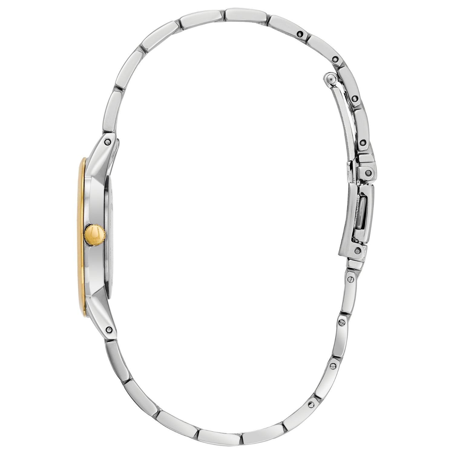Case Material:Stainless Steel Case Thickness:5.2mm Movement:Quartz Glass:Mineral Crystal Water Resistance:0030M Case Color:Two-Tone Dial Color:Silver-Tone Strap:Two-Tone Free Shipping or In-Store Pickup