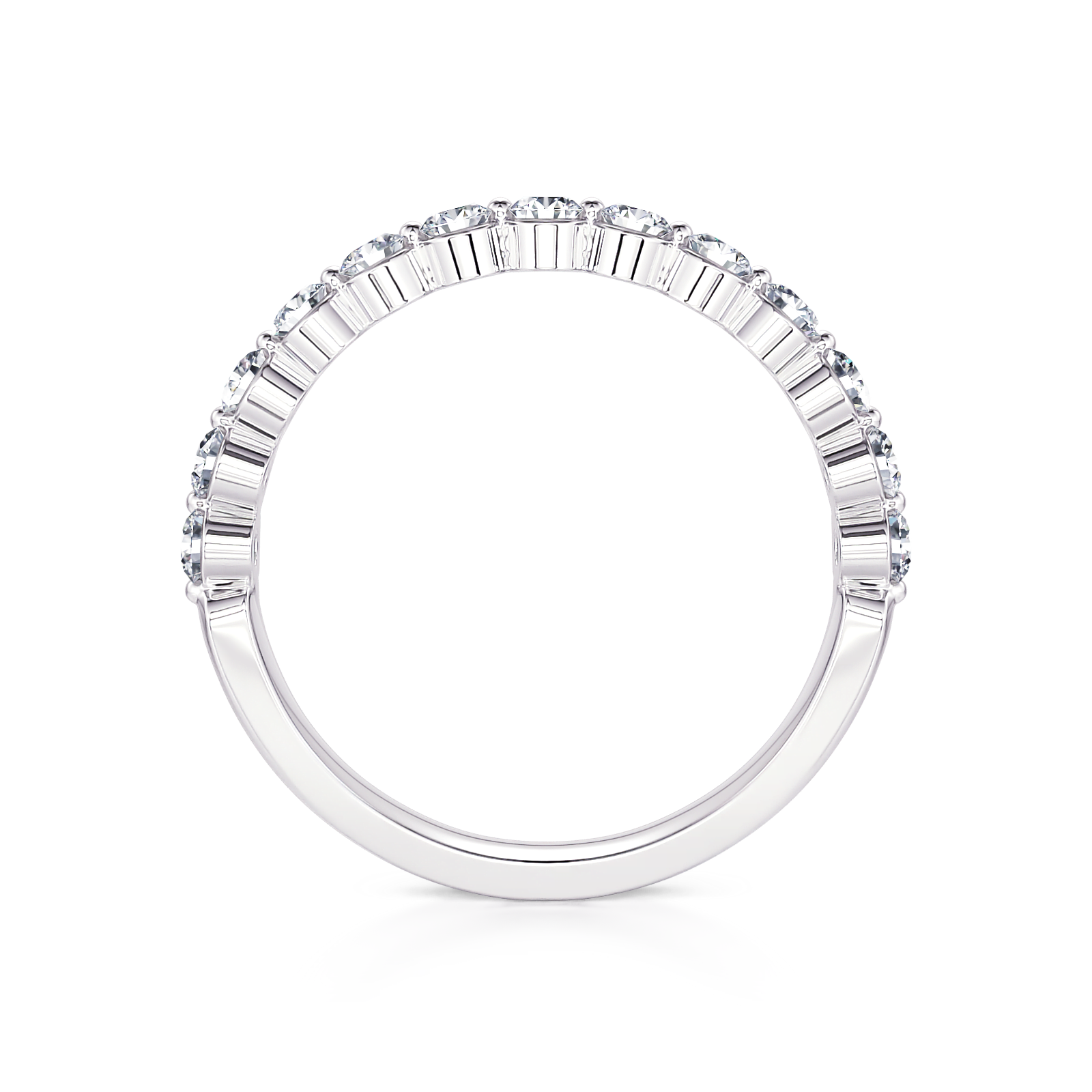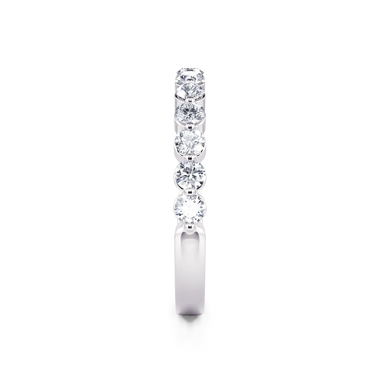 This beautiful classic single prong diamond wedding band features 1/2 ctw of round diamonds going halfway down the shank.