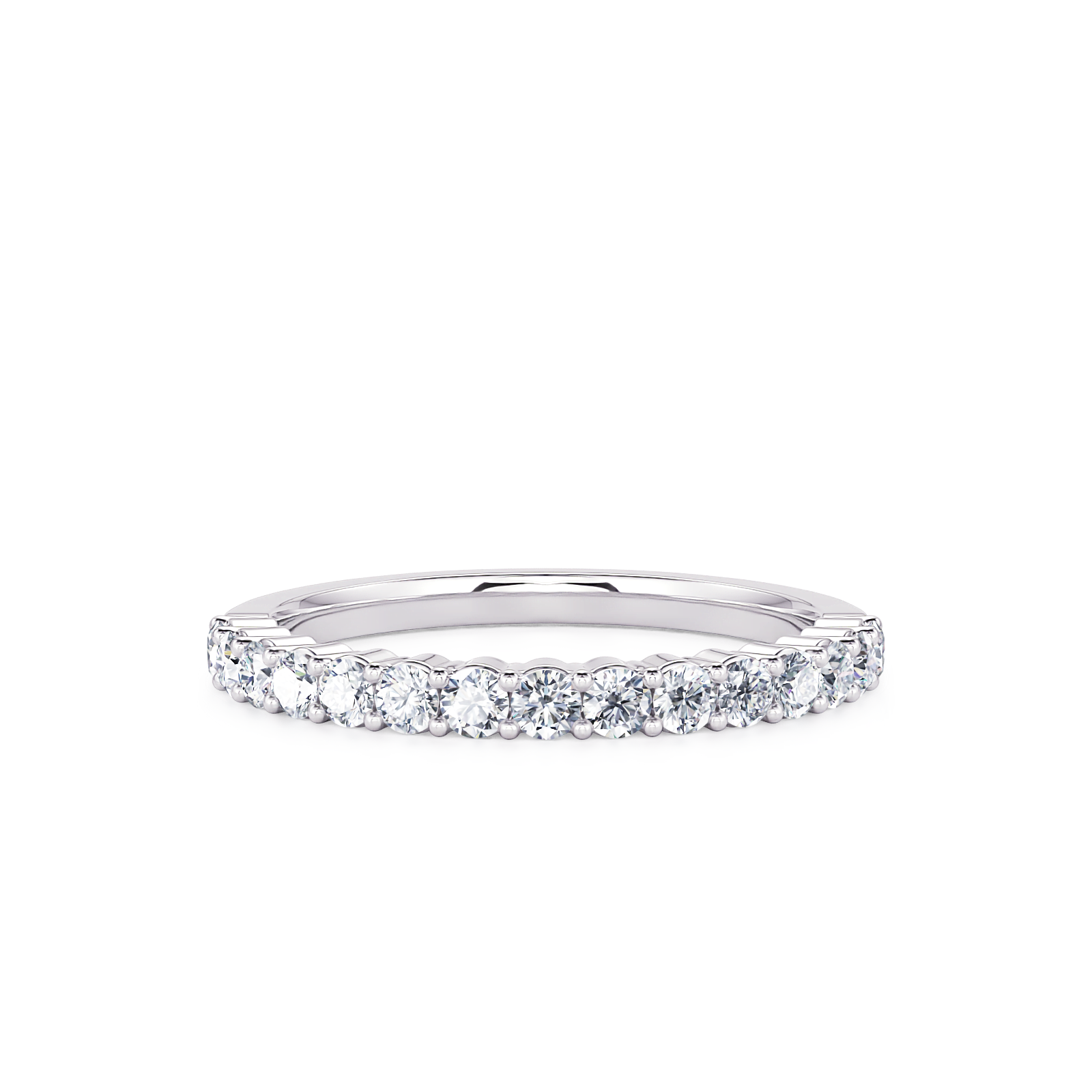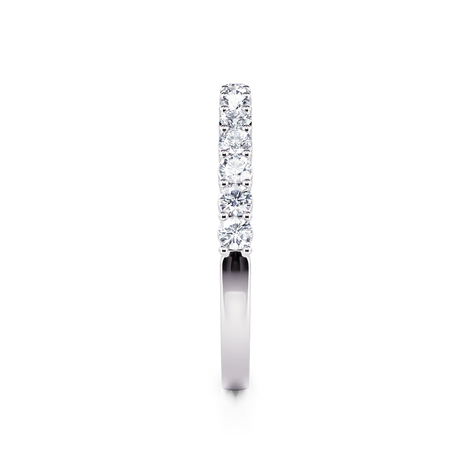 This beautiful classic shared prong diamond wedding band features 1/3 ctw of round diamonds going halfway down the shank.