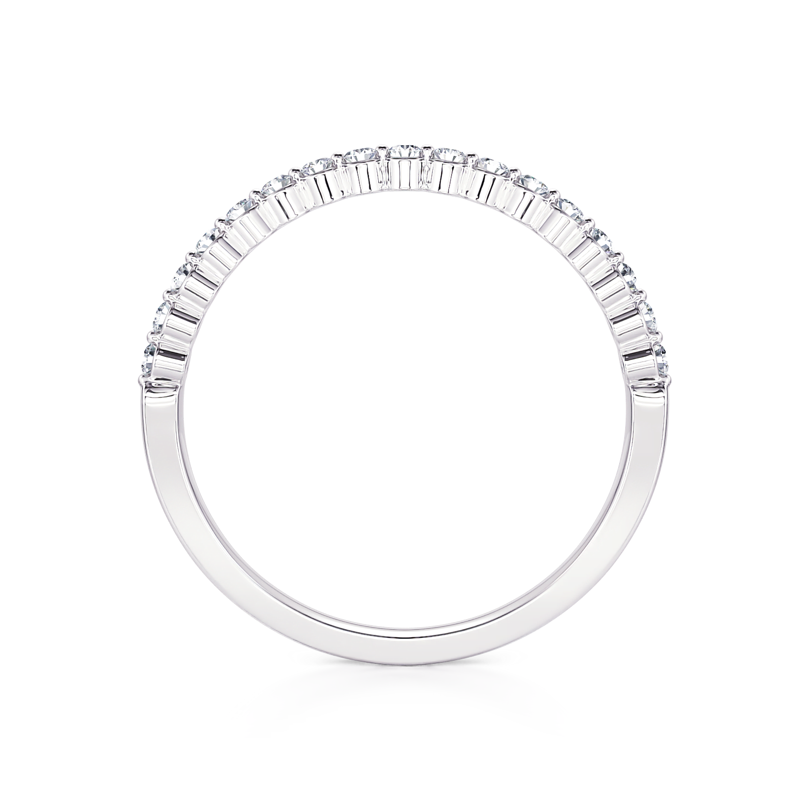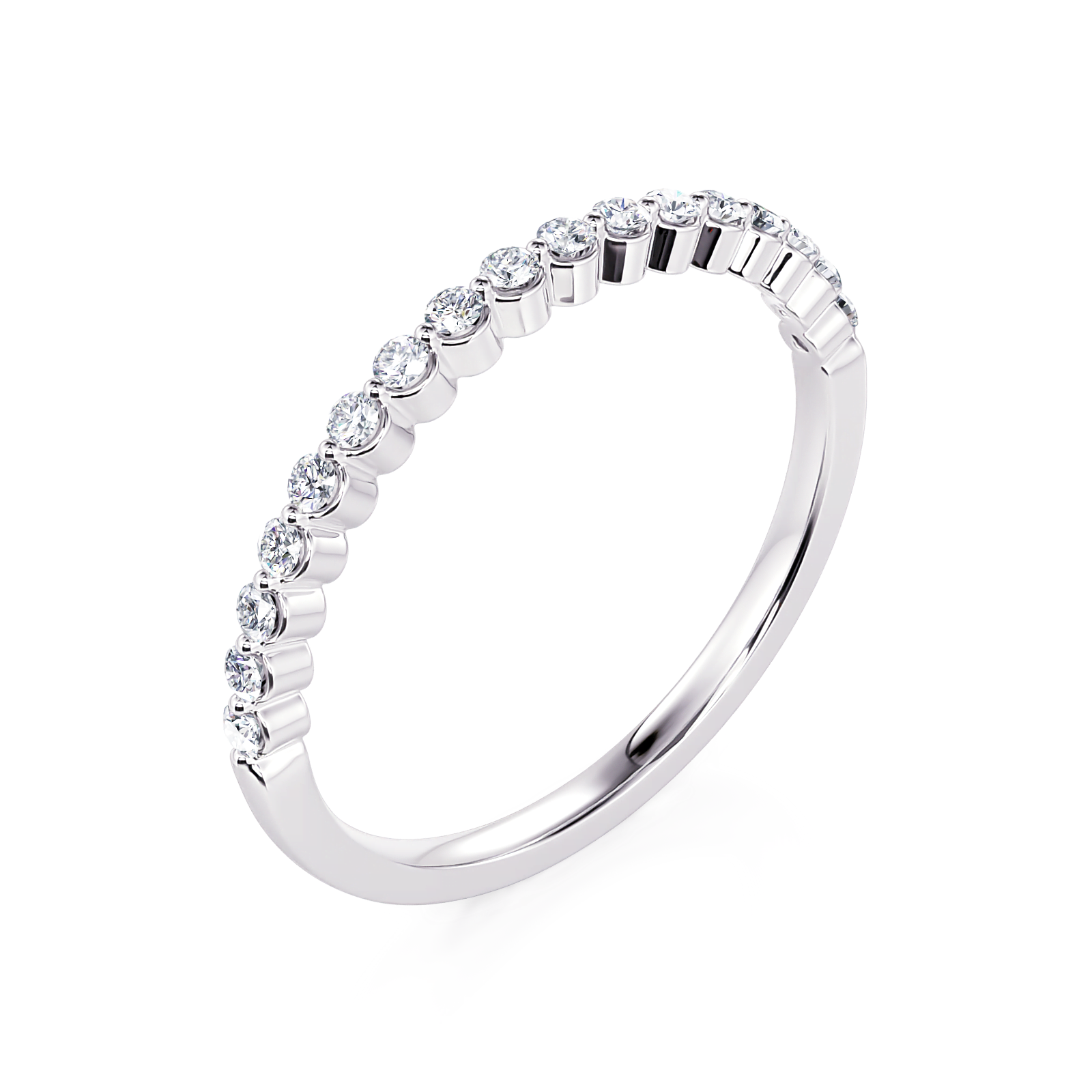 This beautiful classic single prong diamond wedding band features 1/7 ctw of round diamonds going halfway down the shank.