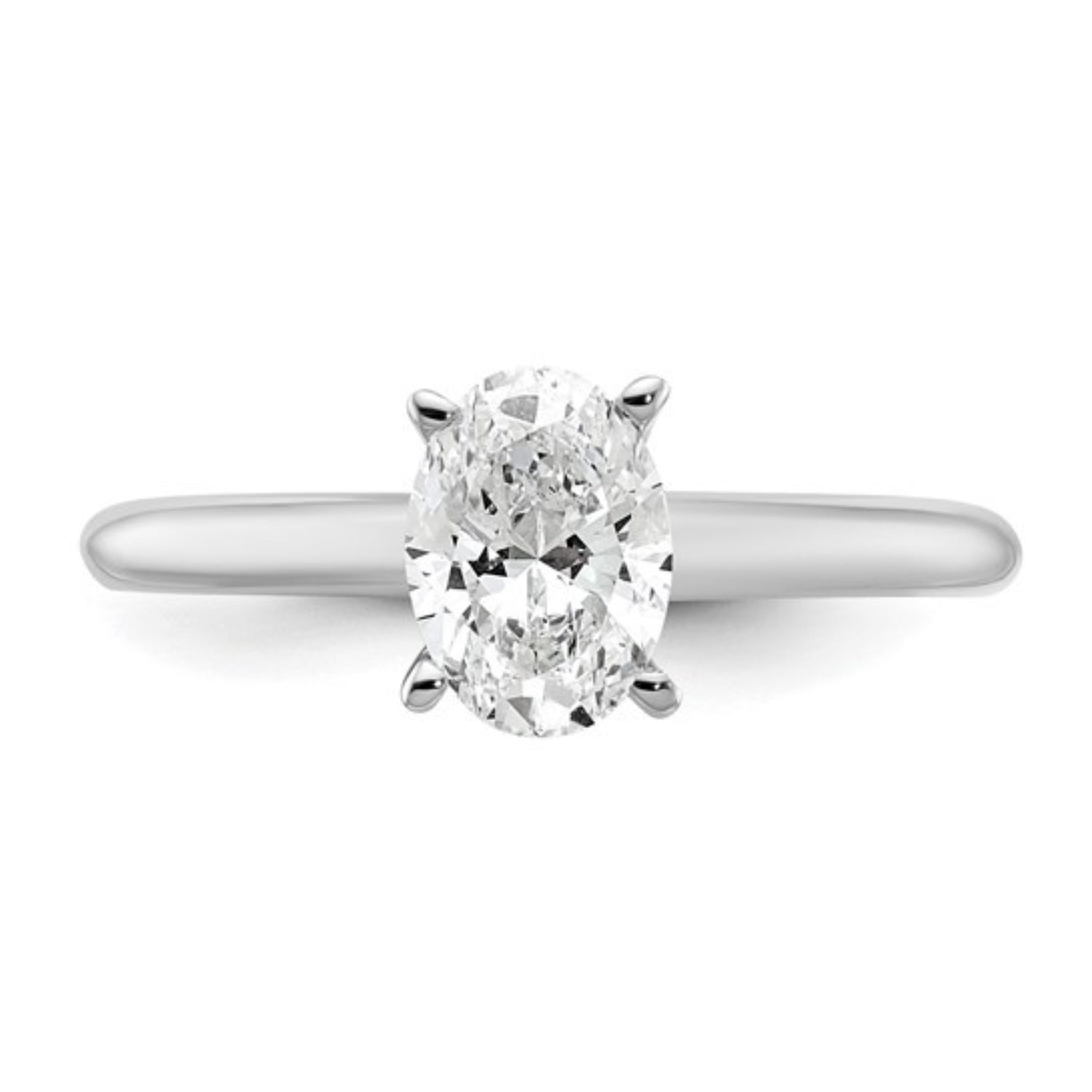 Shop this popular 1 Carat Oval Solitaire Lab Grown Diamond Engagement Ring in 14 Karat White Gold with free two day shipping or in-store pickup at Robert Irwin Jewelers. Metal Type/Color: 14 Karat White Gold Diamond Carat Weight: 1 Carat Oval Lab Grown Diamond. Diamond Color: G Color Diamond Clarity: VS1 Clarity