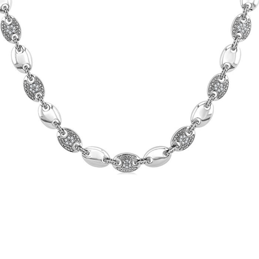 Inspired by strength, stability, and nautical heritage, the Mariner Link is a timeless symbol of connection and resilience, qualities beautifully embodied in this diamond fashion necklace. Whether worn as a tribute to inner resilience or simply for its edgy sophistication, the necklace is a radiant reminder that elegance can be both grounded and bold. It features an alternating pattern of plain silver and textured mariner links, echoing the robust chains used to anchor ships and representing an unbreakable bond. Enhancing the bold contours of the iconic mariner silhouette, the textured mariner links are adorned with 82 pave set round cut diamonds. Crafted in rhodium finish silver, the mariner link diamond fashion necklace offers a total diamond weight of 1/4 Ctw.